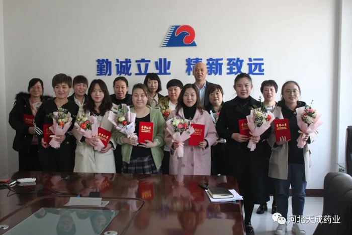 3月8日上午,河北天成藥業(yè)開(kāi)展“風(fēng)華時(shí)代女性,共建美麗天成“三●八"紅旗手頒獎活動(dòng)。公司黨總.支副書(shū)記、工會(huì )主席王頤為接受表彰的17位先進(jìn)個(gè)人頒發(fā)“三●八"紅旗手證書(shū)、鮮花和獎品。