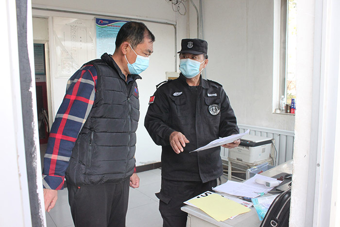 因工作需要往返二廠(chǎng)、三廠(chǎng)的人員,值班保安都會(huì )認真查看工作證,耐心叮囑戴口罩,途中不要去其他地方,避免接觸其他人員。