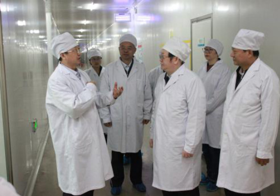 省人大常委會(huì )委員、省人大常委會(huì )教科文衛工委主任楊金深在我公司現代化、高標準的藥品生產(chǎn)設備前,聽(tīng)取了公司董事長(cháng)兼總經(jīng)理王振剛的介紹。王總著(zhù)重介紹了公司抗癌藥項目和聚丙烯塑料安瓿小容量注射劑生產(chǎn)線(xiàn),并詳細介紹了公司的發(fā)展沿革。