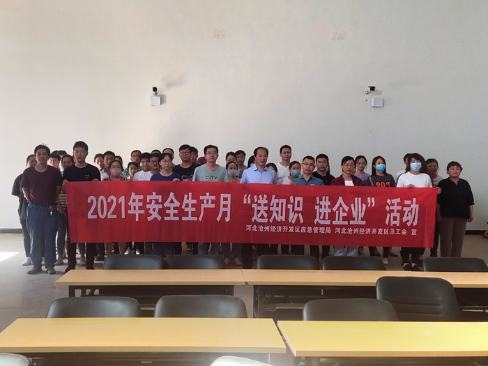 日前,滄州經(jīng)濟開(kāi)發(fā)區應急管理局聯(lián)合滄州經(jīng)濟開(kāi)發(fā)區總工會(huì )啟動(dòng)了送“送知識 進(jìn)企業(yè)”活動(dòng)。6月17日上午,項目組來(lái)到公司三分廠(chǎng)培訓室開(kāi)展活動(dòng)。滄州經(jīng)濟開(kāi)發(fā)區應急管理局李延科長(cháng)、滄州經(jīng)濟開(kāi)發(fā)區總工會(huì )工作人員賈起新出席活動(dòng),滄州渤海專(zhuān)修學(xué)院李振濤講師進(jìn)行授課。