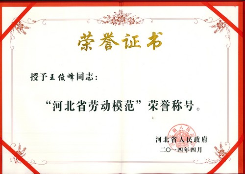 2014年4月榮獲“河北省勞動(dòng)模范”榮譽(yù)稱(chēng)號
