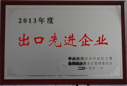 2014年榮獲“2013年度出口先進(jìn)企業(yè)” 榮譽(yù)稱(chēng)號